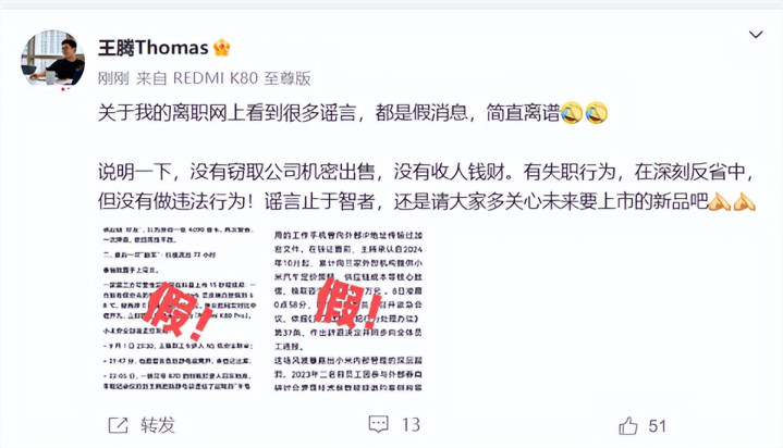 据悉,此前曝光的“小米集团职业道德委员会”邮件显示,王腾被辞退是因为泄露公司机密信息,且存在利益冲突等严重违规违纪行为。