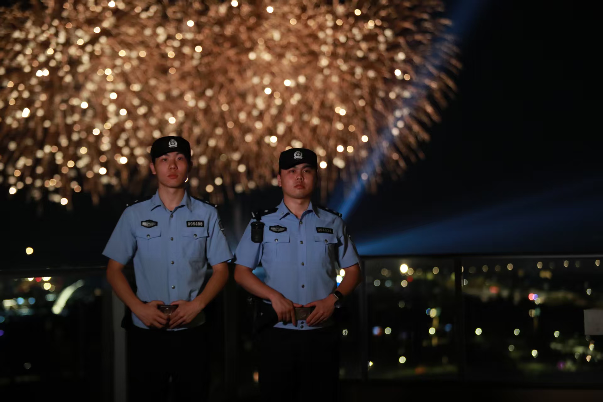 最炽热的考验是焰火阵地。116名民警承担起闭幕式焰火阵地安保重任。这是一场耐力的终极挑战。从演练启动到闭幕式焰火升空,参战警力持续轮班值守逾50小时。生理的疲惫、紊乱的生物钟如影随形,但高度的警觉从未松懈。