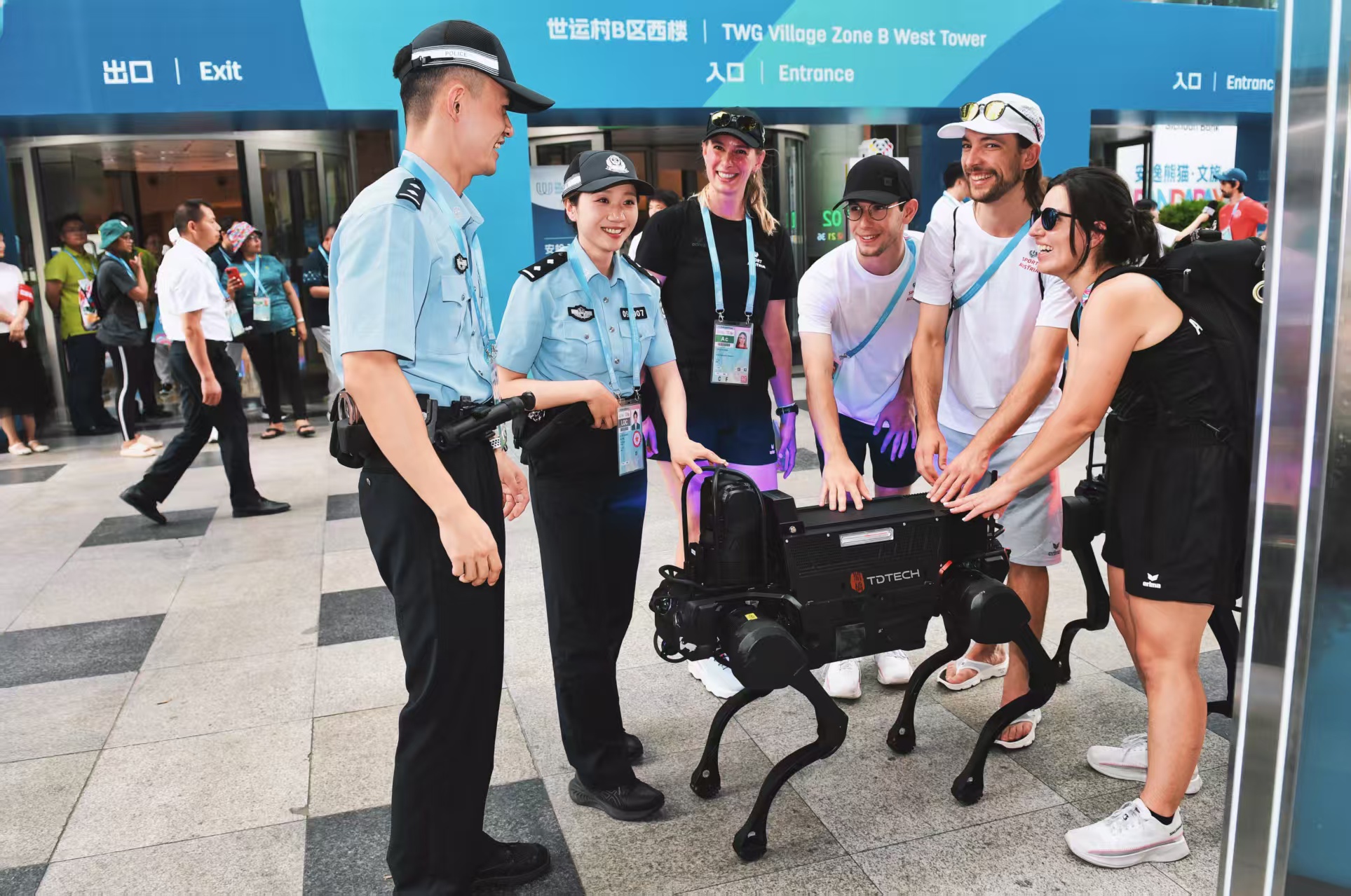 “谢谢你们每天辛苦努力,确保比赛顺利安全!”龙泉驿区荷球馆安保指挥长马晓亮和安保经理王辉收到了一封来自赛委会的感谢信,寥寥数字重千钧。在世运村警务工作站,前来致谢的外国警察运动员感慨:“警务站24小时运转,中国警察十分高效和敬业!”他特意拿出自己国家的警徽,与工作站民警交换留念。跨越山海的赞誉,是对成都公安最高的褒奖。